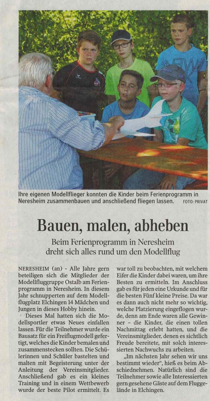 Schule arbeitete dazu mit der Modellfluggruppe Ostalb zusammen, die die